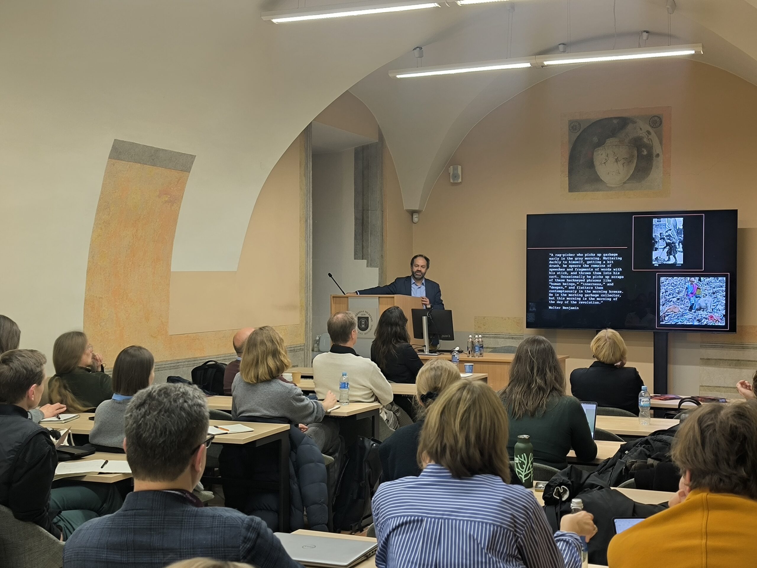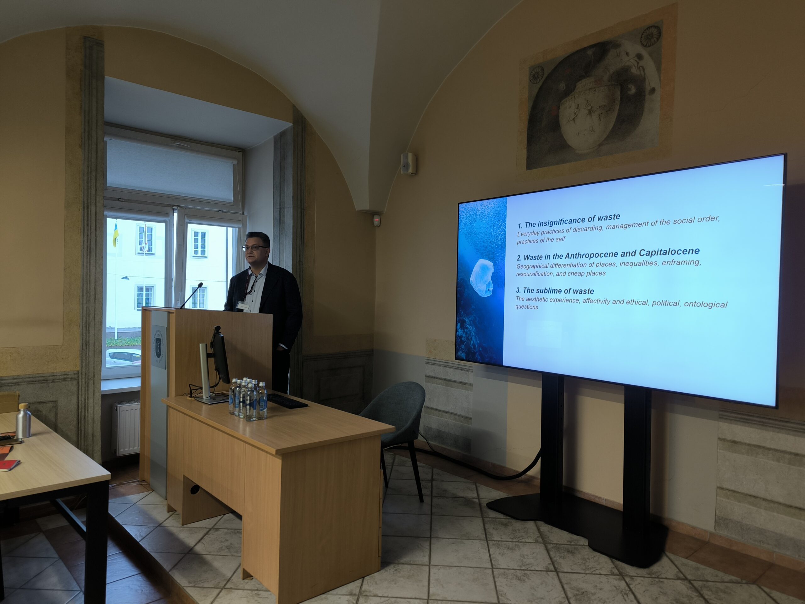 The final sessions brought together broader philosophical and cultural reflections. Vaiva Daraškevičiūtė (Vilnius University, PAScapes) argued for moving beyond purely visual readings of anthropocene landscapes, suggesting that waste should be understood through experiences of abjection and the uncanny, which reveal its unpredictability and its challenge to human-centered ways of seeing the world. Saulius Geniušas (The Chinese University of Hong Kong) revisited the concept of solastalgia, redefining it as a form of placelessness produced by environmental degradation rather than a simple feeling of homesickness. Svitlana Matviyenko (Simon Fraser University) addressed the deep temporal layers of warfare through the underground nuclear explosion at Yunokomunarivsk, showing how waste continues to act as an agent in both times of war and uneasy peace. The conference concluded with Nicolas de Warren (Pennsylvania State University), who reflected on literary imaginaries of ecological catastrophe and emphasized that such imaginaries may help us confront the disasters already unfolding around us.