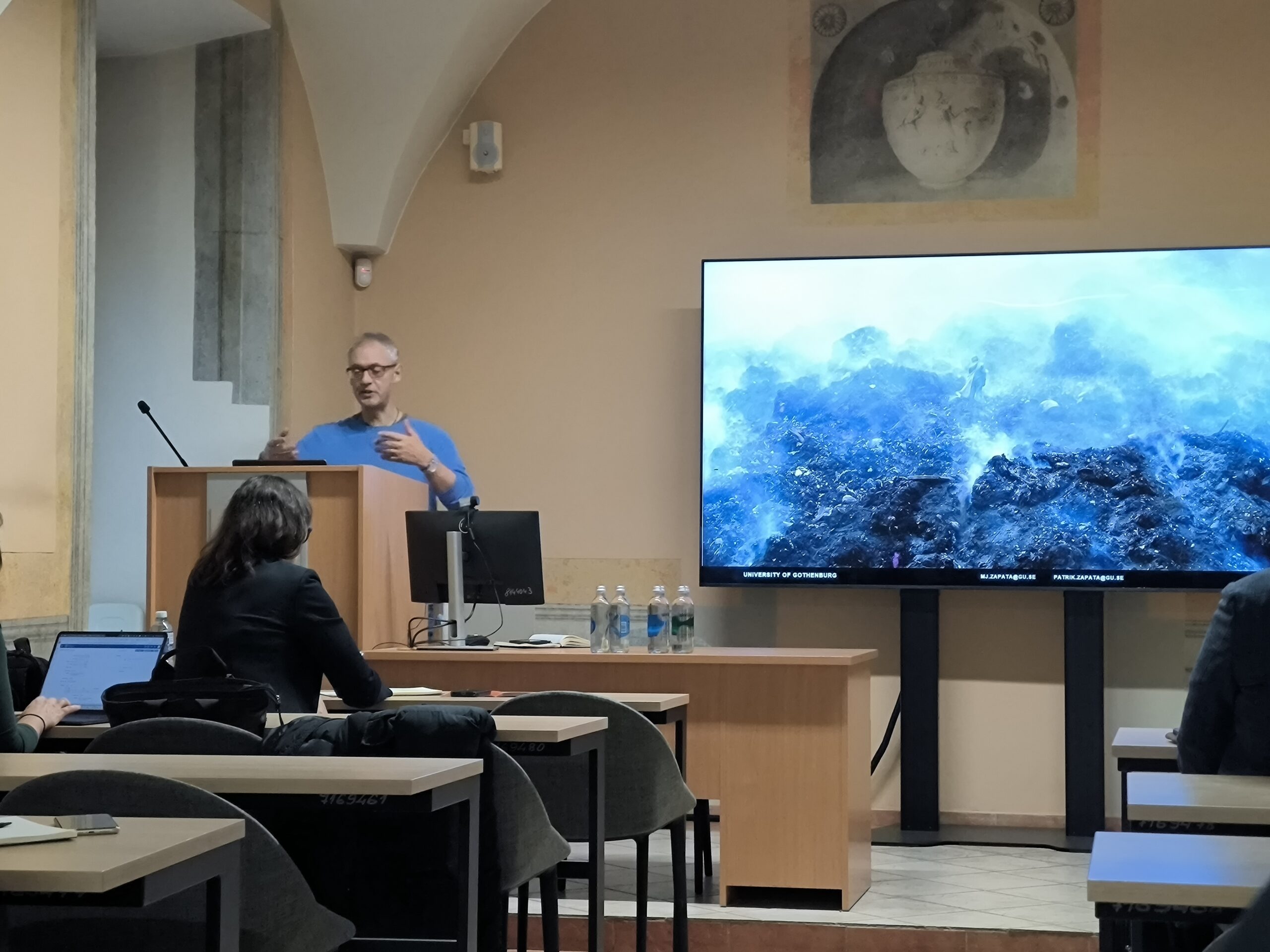 The focus then shifted to questions of art, memory, and resistance. Marko M. Marila (University of Turku) presented environmental art as a “principle of hope”, suggesting that anti-uranium rock carvings in Finland create emotional and ethical ties to threatened landscapes instead of enabling extractive projects. Francisco Martínez (University of Murcia) explored the ecological memory of Soviet-era mining in eastern Estonia, using art and ethnography to allow post-industrial waste to “speak” as a witness to infrastructural damage and social loss. María José Zapata Campos and Patrik Zapata (University of Gothenburg) examined the landfill of La Chureca in Nicaragua, showing how authoritarian forms of waste governance rely on technocratic enclosure, even as waste pickers sustain practices of commoning and everyday resistance. Kristupas Sabolius (Vilnius University, PAScapes) offered a philosophical perspective, proposing compost-ability as a way of thinking about waste not as an endpoint but as a condition for coexistence, in which new forms of life emerge through ongoing negotiation.
